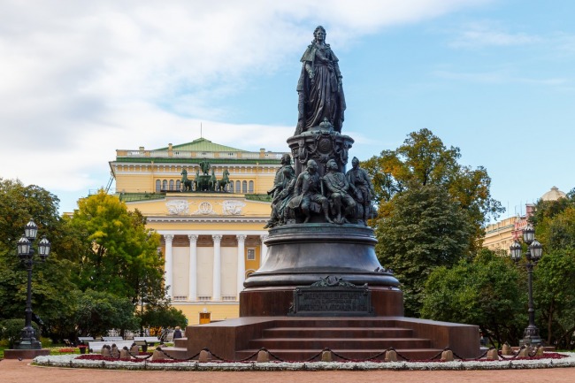 На площади Островского я расскажу о проекте архитектора Росси, по которому в начале 19 века здесь создали садик, а также интересную историю о памятнике Екатерине Второй. Также поговорим о красивых зданиях площади — Александринском драматическом театре и Российской национальной библиотеке с особой скульптурой на крыше.