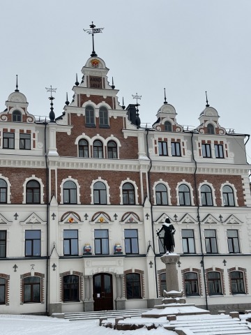 Нарядное историческое здание в центре города — отреставрированное и внесённое в культурное наследие.