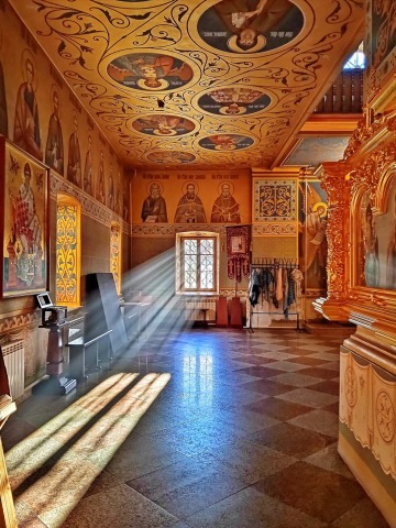 Здесь мы осмотрим снаружи соборы 17 века постройки и зайдём в трапезную 16 века, где увидим место явления Богородицы Александру Свирскому. В трапезной можно будет пообедать.