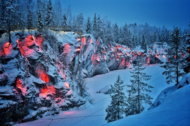 Рускеала — подлинная жемчужина Северного Приладожья: карельские пейзажи, мраморные скалы «цвета белой ночи», изумрудные воды карьера. Остаться равнодушным невозможно!