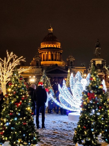 Приглашаем полюбоваться новогодним убранством трёх главных площадей Петербурга: Исаакиевской, Сенатской и Дворцовой. По пути мы обсудим традиции Рождества и Нового года. Поговорим о праздниках в домах простых людей и знатных господ. Поводим хоровод у главной городской ёлки, а, может, и покатаемся с горок.