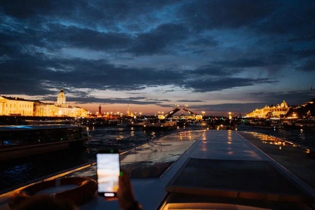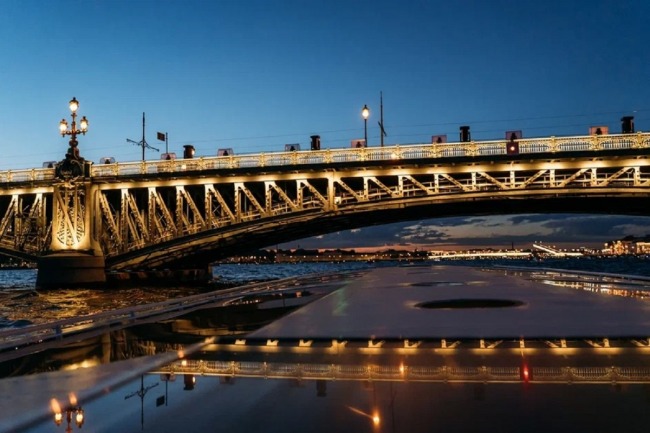 Пройдя на теплоходе, вы увидите пролёты мостов над водной гладью, гранитные набережные и торжественные фасады при свете городских фонарей. Успеете сделать фотографии, по желанию посидите на открытой палубе и поприветствуете аплодисментами разводящиеся мосты.